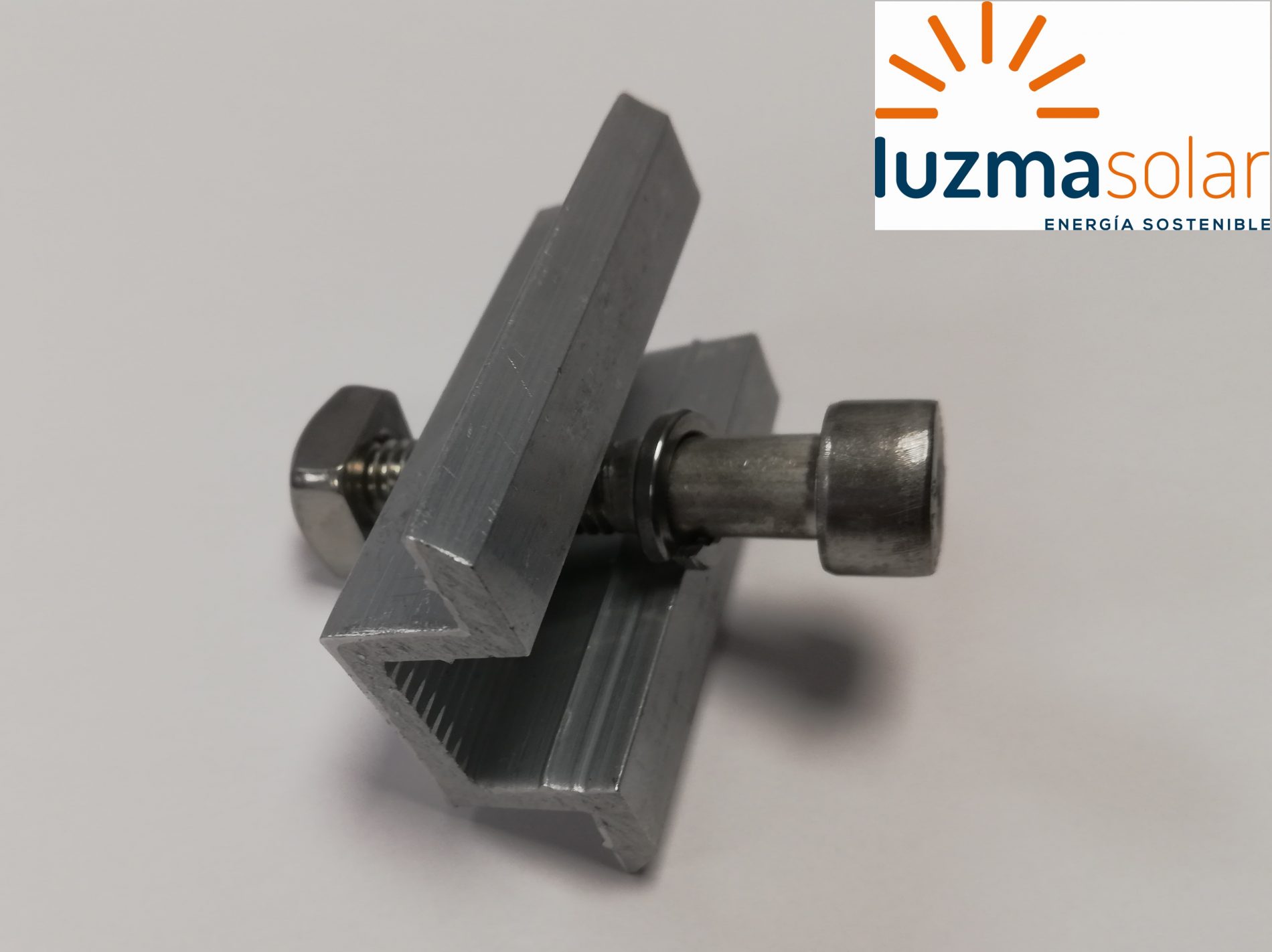 Grapas de aluminio para fijar el módulos al carril fotovoltaico.